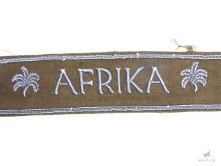 Лента «Африка» учреждена в военно-морских силах 29 декабря 1942 г., в сухопутных и военно-воздушных силах — 15 января 1943 г. Ею награждались солдаты и офицеры вермахта, прослужившие в Северной Африке 6 месяцев или получившие ранение на этом театре боевых действий. 6 мая 1943 г. были введены новые условия награждения — не менее 4 месяцев службы. Награда изготавливалась в виде шерстяной ленты бежевого цвета с серебряной каймой по краям и вышитой серебристым хлопком посередине надписью «AFRIKA». Края надписи обрамляли изображения пальм, вышитых нитками такого же цвета. Носили ленту на левом рукаве на 15 см выше манжеты. Нарукавная лента «Африка» являлась наградой, отмечавшей заслуги ветеранов, служивших под началом легендарного «Лиса пустыни» — Эрвина Роммеля. Ее следует отличать от ленты «AFRIKA KORPS» — отличительного знака частей, входивших в состав Африканского немецкого корпуса. Эта лента была темно-зеленой с коричневыми и белыми каемками. Посередине была вышита надпись «AFRIKA KORPS». Имеются также сведения о том, что военнослужащим люфтваффе выдавали нарукавные ленты «AFRIKA KORPS» синего цвета. Хотя ленты «AFRIKA» и «AFRIKA KORPS» имеют различный статус, многие ветераны боев в пустыне считают их одинаково почетными наградами. Выдача нарукавной ленты была прекращена после 29 августа 1944 г.